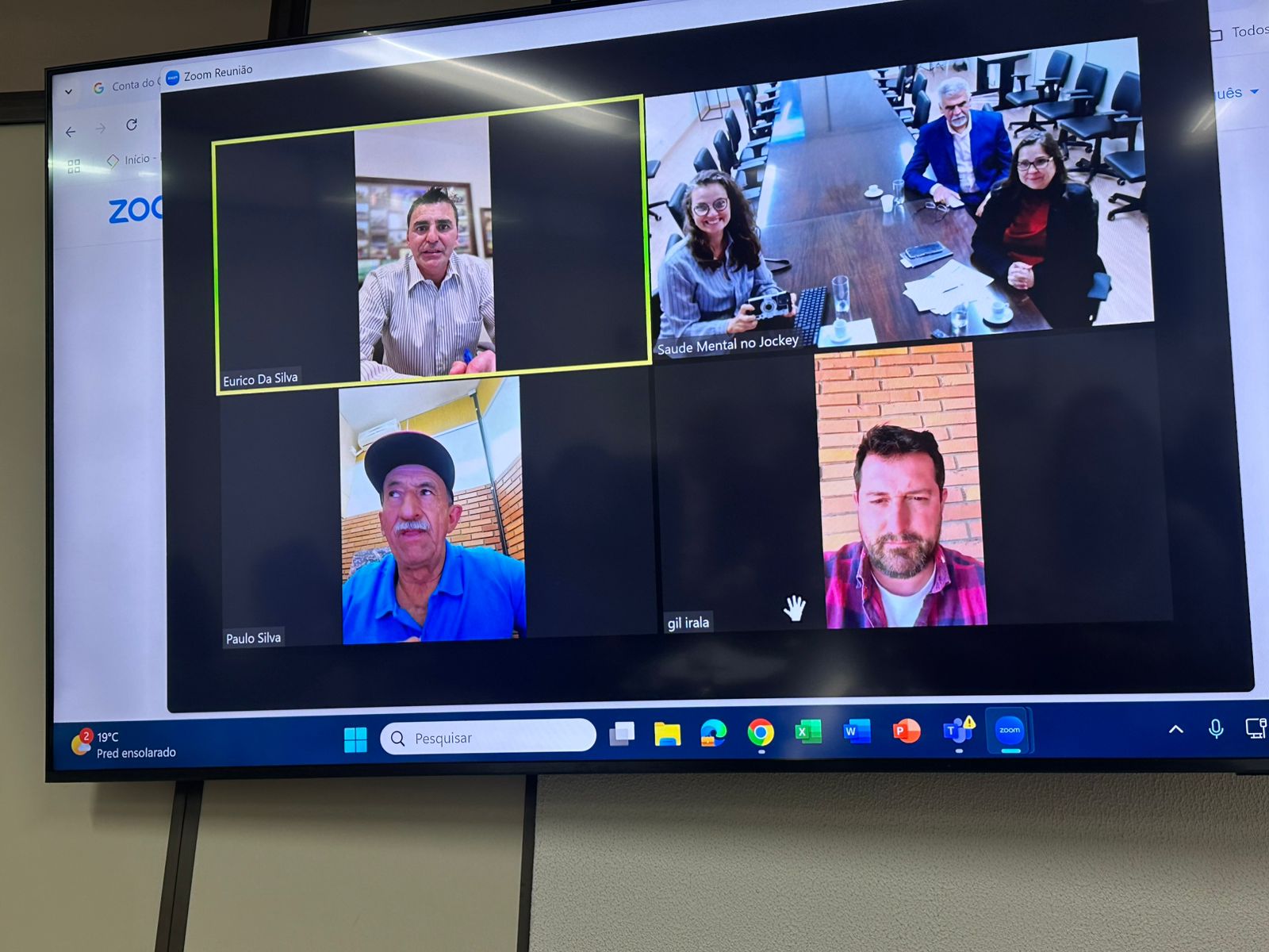 Na última sexta-feira, 23 de maio, a Vereadora Psicóloga Tanise Sabino reuniu-se virtualmente com o ex-joquei e coach Eurico da Rosa, o presidente do Jockey Club do Rio Grande do Sul, Gil Irala, e o diretor da Vila Hípica do clube, Paulo Silva, para discutir os detalhes de um projeto inovador e permanente voltado à saúde mental dos profissionais do turfe. A proposta, idealizada por Tanise, conta com o apoio integral do Jockey Club e terá como embaixador o renomado Eurico da Rosa, reconhecido mundialmente por sua trajetória vitoriosa nas pistas e atualmente radicado no Canadá.