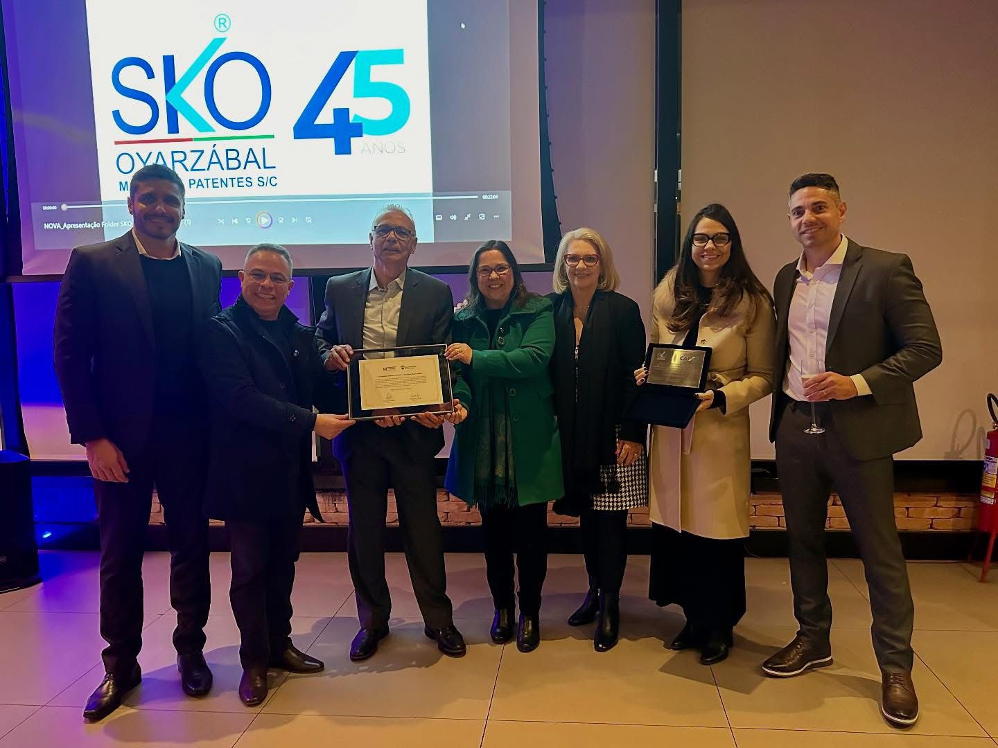 O casal Sabino entregaram uma homenagem através de uma placa de reconhecimento ao fundador da empresa, João Cassiano Oyarzábal, pela trajetória de contribuição à proteção da inovação e da propriedade intelectual no Brasil. A SKO, fundada em 1980 em Porto Alegre, atua no registro de marcas, patentes, desenhos industriais e software, com clientes em todo o território nacional e parcerias internacionais.