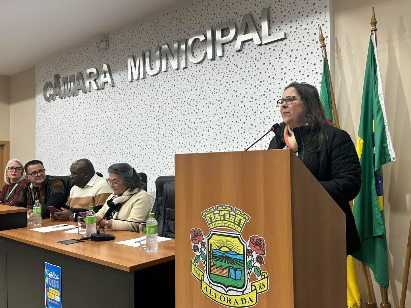 A vereadora e psicóloga Tanise Sabino esteve acompanhando a e utilizou a tribuna da Câmara Municipal de Alvorada para ressaltar a importância do Programa Acolher & Incluir, implementado no município. Tanise também ressaltou o Programa Incluir Mais Porto Alegre apresentar resultados técnicos e experiências exitosas que já vêm sendo aplicadas em Porto Alegre. A fala ocorreu durante a audiência pública que discutiu a efetividade do programa, destinado a promover educação inclusiva para crianças e adolescentes com deficiência.
